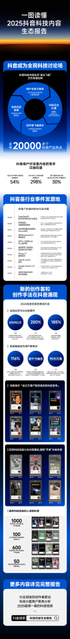 1 月 5 日,《2025抖音科技内容生态报告》(以下简称“报告”)发布,展现了2025年抖音科技内容生态的发展与变化。