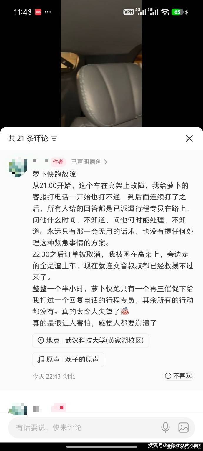 据乘客小鲁回忆,当晚8时30分他通过平台叫车后,车辆在高架行驶途中突然频繁急刹,最终完全停止并开启双闪。他第一时间按下车内SOS按钮,但未收到任何回应;连续拨打20余次客服电话后,终于接通的工作人员仅以“网络故障”为由,要求其原地等待。由于车外车流密集且大型货车往来不断,小鲁不敢贸然下车,只能在车内煎熬等待,直至交警于22时40分抵达现场将其带离。事后平台仅提供两张总价值40元的无门槛乘车券作为补偿,引发乘客对安全保障机制的强烈质疑。