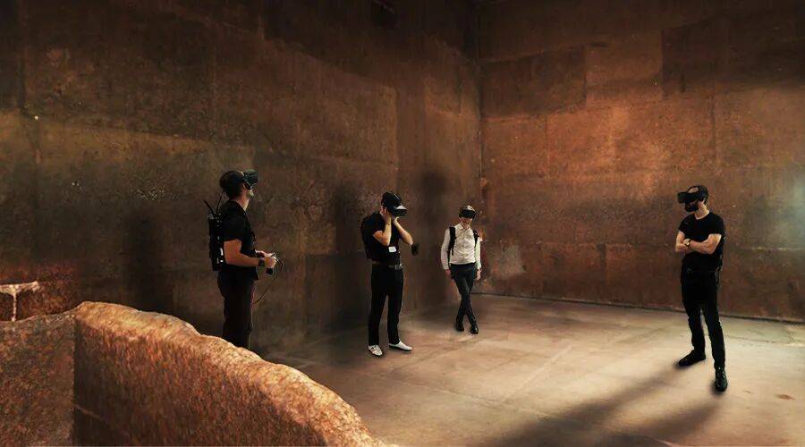与传统VR体验不同,该项目的核心魅力在于其严谨的学术支撑。据项目方介绍,展厅内呈现的每一块石块、每一处空间布局均基于考古实证与科学推理。科研团队运用μ子成像、热扫描等尖端技术,结合百年考古成果,首次以“人类视角”还原了金字塔内部长期未被探明的神秘区域。这些空间即使实地探访金字塔的游客也无法触及,而通过虚拟现实技术,参观者得以“亲临”这些沉睡千年的文明遗迹。