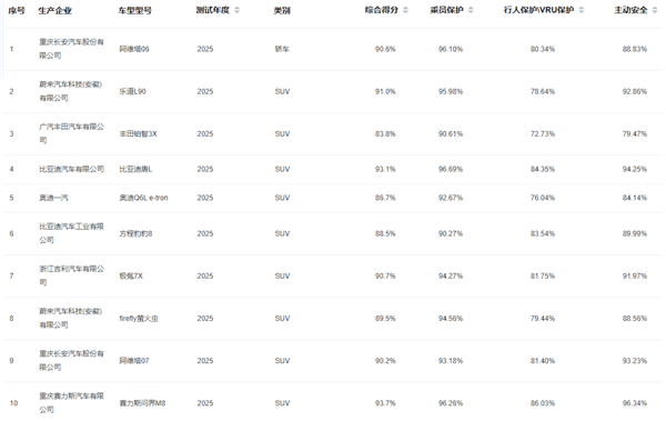 测试车型为尚界H5纯电Max长续航版,官方指导价19.98万元。在细分项目中,乘员保护得分率高达98.27%,主动安全得分率95.17%,对弱势群体(VRU)的保护得分率达82.91%,并顺利通过电安全检测。具体来看,实车碰撞、远端保护、鞭打测试、行人腿部保护、自动紧急制动(针对行人和二轮车)以及车辆照明效果等项目均进入全部测试车型前20%,展现均衡的安全实力。