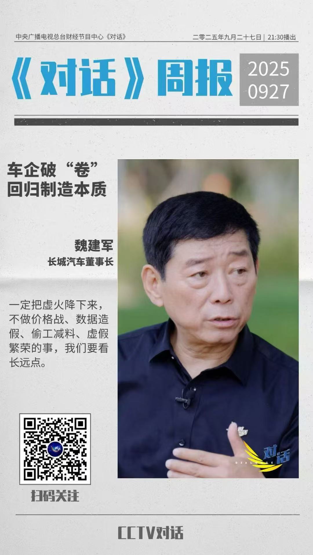 主持人陈伟鸿与长城汽车股份有限公司董事长魏建军在节目中深度对谈,双方就当前中国汽车产业发展现状进行了探讨,魏建军董事长分享了长城汽车面对当前汽车产业新形势,探寻出的破局之道。