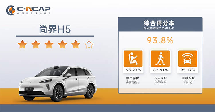近日,中汽测评正式对外公布了尚界H5的C-NCAP测试结果,这款纯电Max长续航版车型凭借出色的表现,成功斩获五星+评价,综合得分率高达93.8%,在近年参与测试的车型中名列前茅。这一成绩不仅彰显了尚界H5在安全性能上的卓越实力,也为其在竞争激烈的SUV市场中赢得了更多关注。